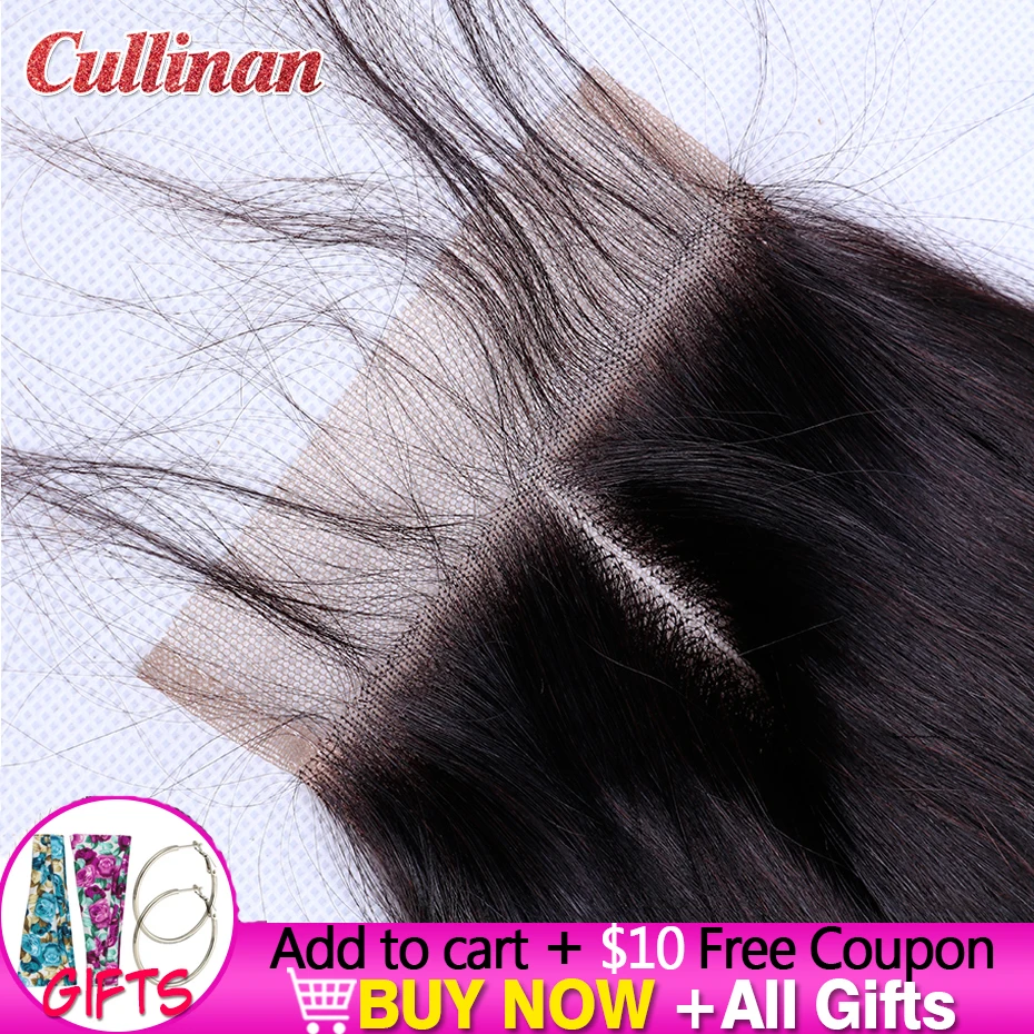 Descuento Cullinan-extensiones de pelo humano con cierre de encaje para mujer, accesorio de pelo liso con cierre de encaje suizo 4x4, en tres partes, Color Natural WGwgrNEGkL3