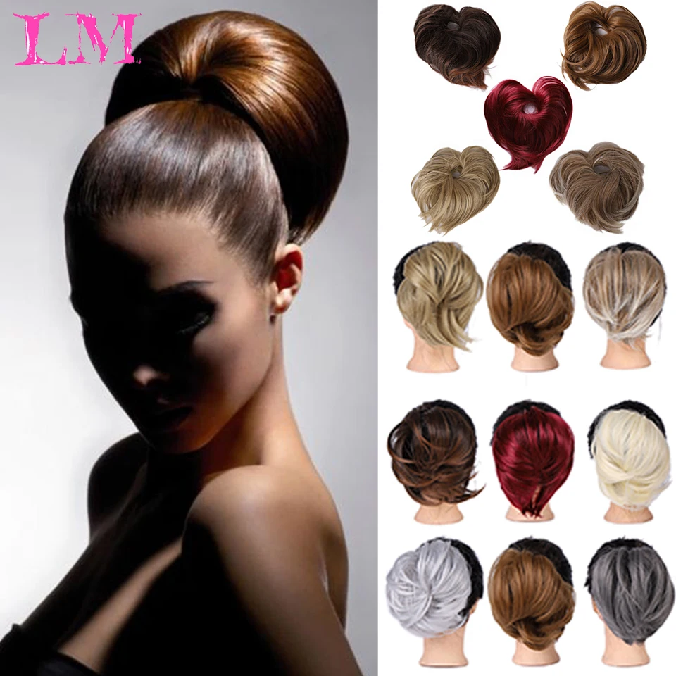 Name: LM-moño de rosquilla recto para mujer, moño de pelo sintético ombré elástico Updo esponjoso desordenado