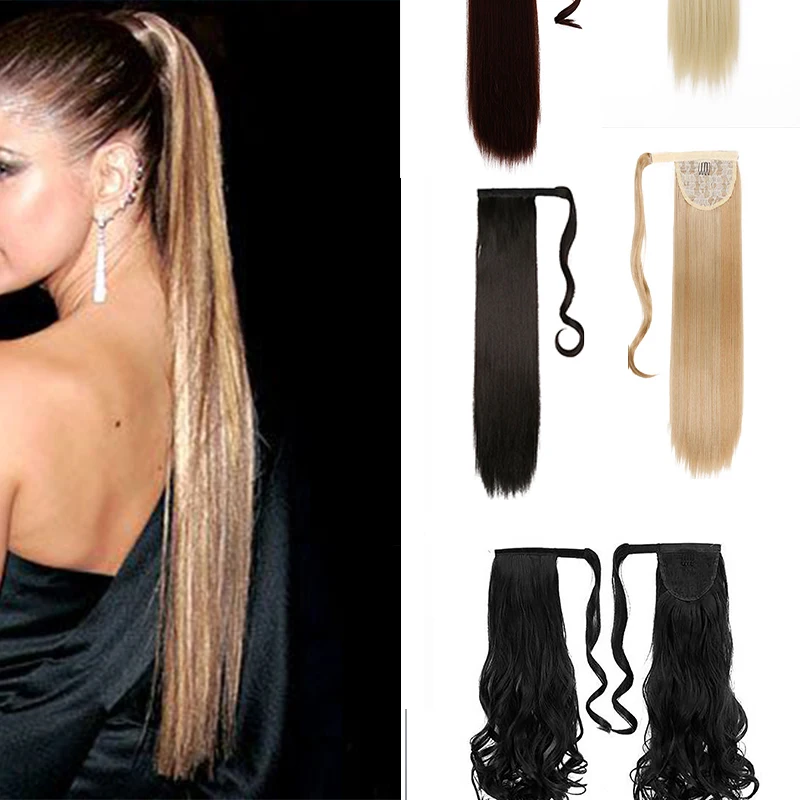 Name: Allaosify-coleta larga y recta de 24 pulgadas, pelo sintético Natural Real con ganchos para extensiones de cabello, cola de caballo envolvente