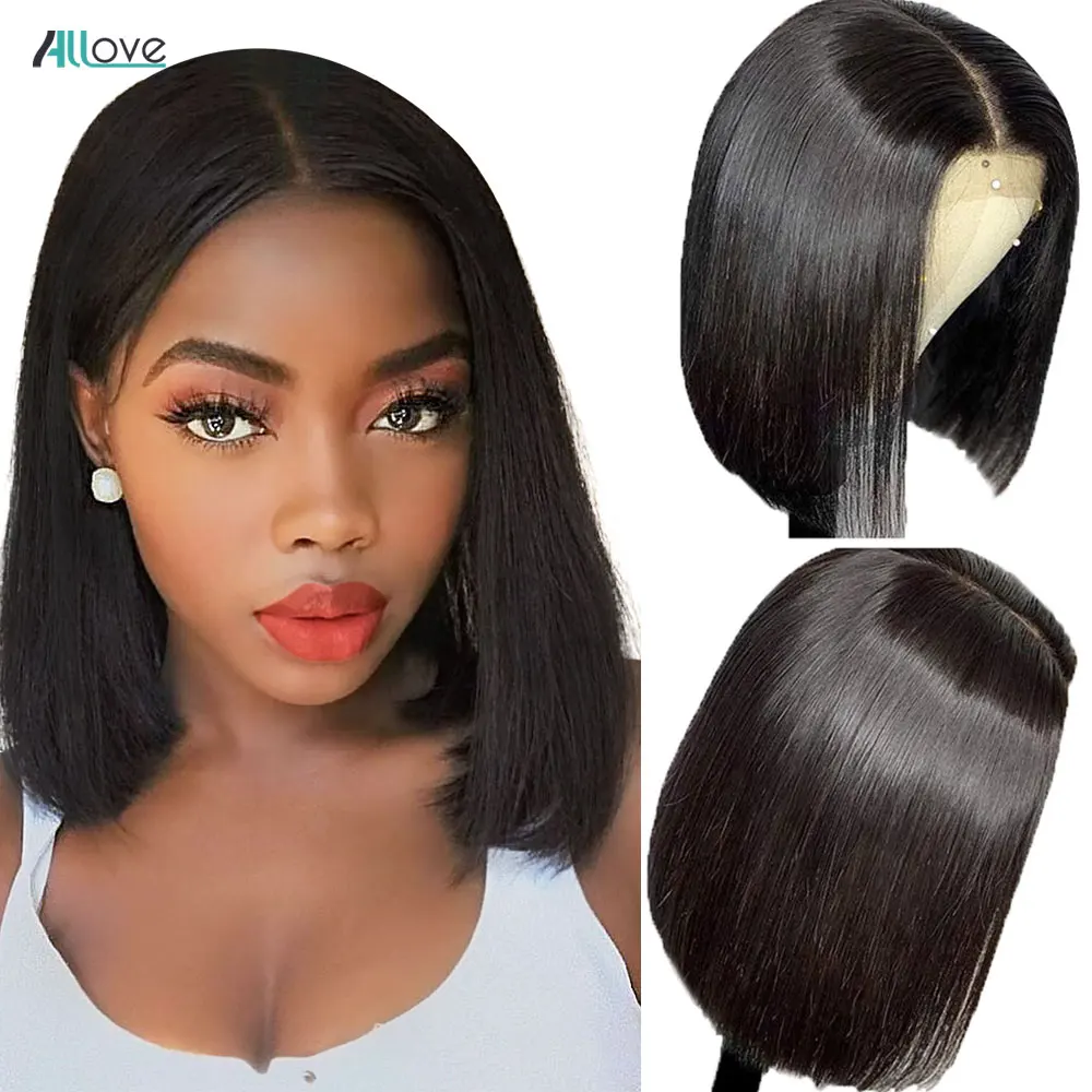 Mejor Pelucas de encaje de Allove Official Store por Bob-pelucas de cabello humano con cierre de encaje frontal para mujer, Bob corto recta brasileña, prearrancada, 4x4
