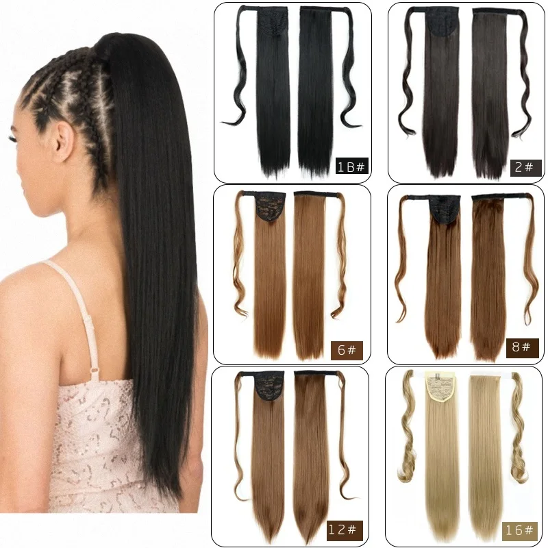 Name: Extensiones de cola de caballo sintética, coletas, pelo falso Rubio, largo y recto, Clip en el pelo, resistente al calor, 22 pulgadas
