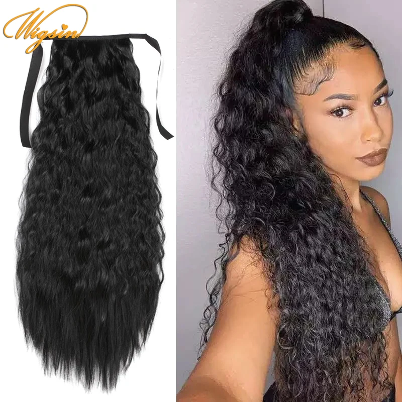 Bajo costo WIGSIN-extensiones de cabello sintético Afro rizado de 22 pulgadas, coleta con cordón, accesorios para mujer, color negro y marrón Natural WGwgrJ800DJ