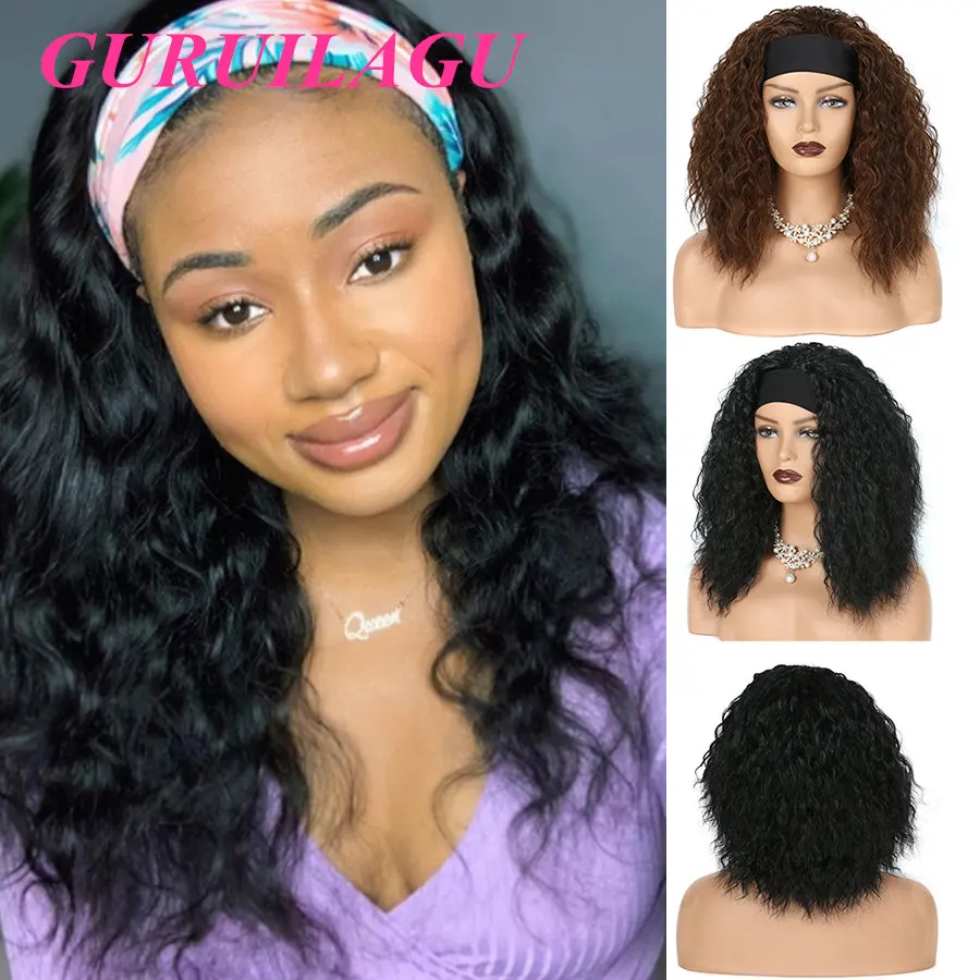 Name: GURUILAGU pelucas para mujeres negras agua Diadema con ondas peluca pelo de fibra de alta temperatura negro peluca sintética peluca para mujer Bob corto