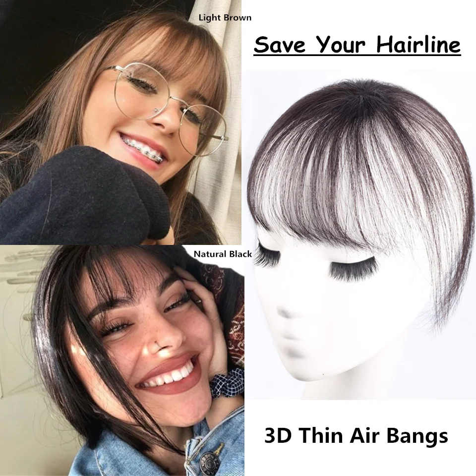 Name: Flequillo brasileño de cabello humano, Clip de flequillo postizo hecho a mano, flequillo ligero y romo de aire suave