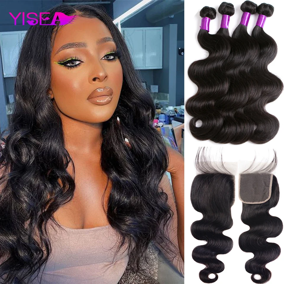 Extensiones de cabello naturalGran venta YISEA onda del cuerpo mechones con cierre 3 mechones brasileño de la armadura del pelo extensiones de cabello humano mechones con cierre de encaje de cierre con mechones aKwjMnZbgNO